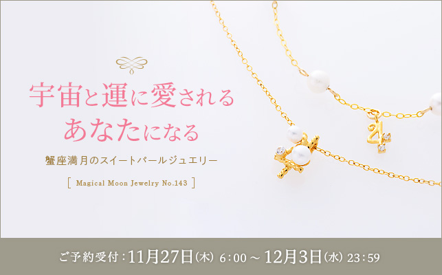 今回のジュエリーは、感情を整え、宇宙と運に愛される体質へと変容させる「蟹座満月のスイートパールジュエリー」。アチューンメントの1回目として、本日1月3日の蟹座満月の波動を宿しました。