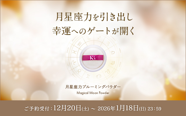 月の本拠地である蟹座で、ラッキースター木星と満月が重なる、蟹座木星期のピークとなるこの日。この満月のエネルギーが宿ったパウダーをたっぷりまとえば、あなたのオーラが木星の楽天的でポジティブなオーラへと変わっていきます。あなたの秘められた月星座力(生まれ持った才能や個性)も自然と引き出され、周囲にその魅力が輝き出すでしょう。雰囲気が変われば、出会う人や身の回りの出来事も変化します。新たな可能性がどんどん広がっていくことを感じられるはずです。