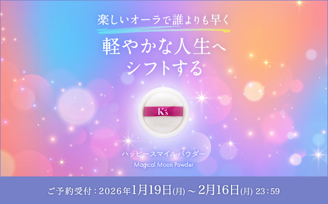 ただいまご予約を承っているマジカルムーン・パウダーは、本日の獅子座満月と2月17日の水瓶座新月(金環日食)のエネルギーをアチューンメントする「ハッピースマイルパウダー」。